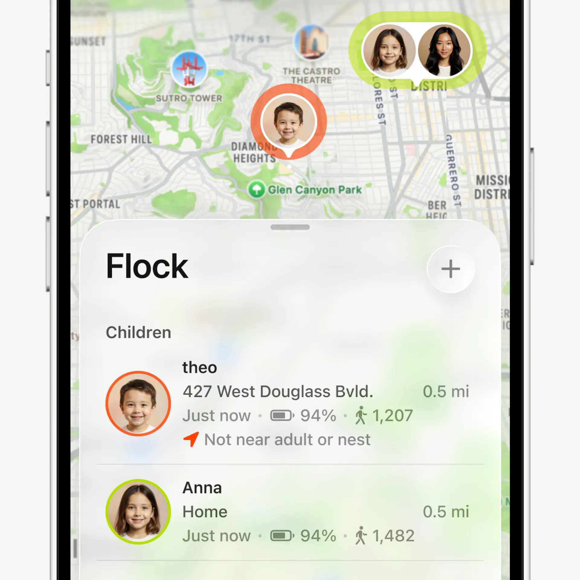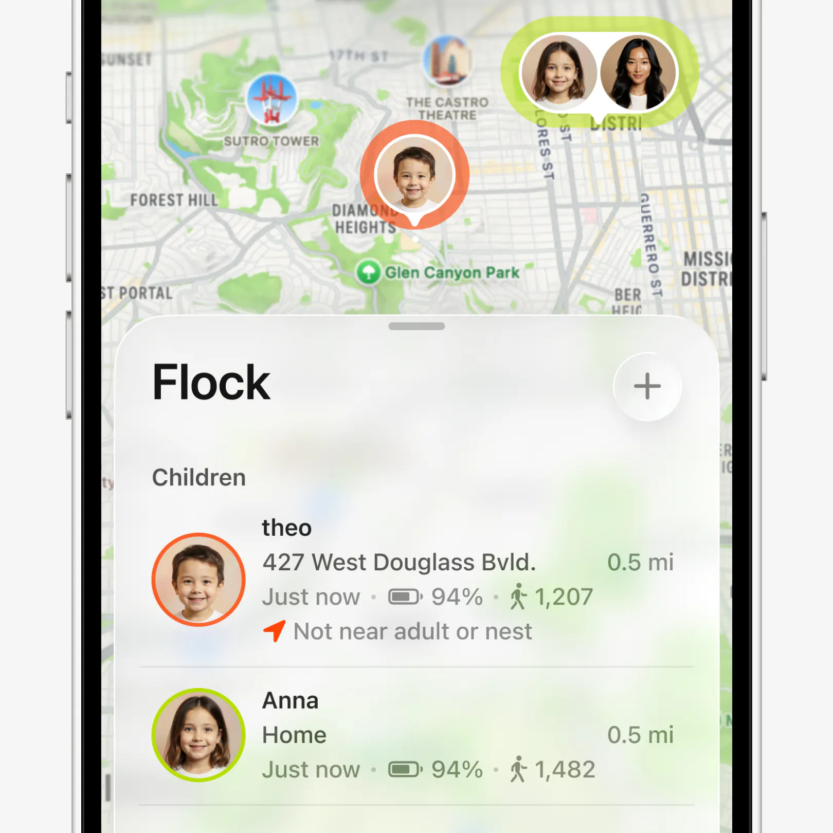 Invite grandparents, teachers, or trusted caregivers to join your Flock. Everyone sees what matters, when it matters — nothing more.